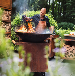 La formule est composée d'un buffet barbecue OFYR (blanc de vollaile jaune, contre-filet de boeuf snaké, saucisse de campagne, mergez, Falafelle (veggie), lard mariné avec en accompagnements : salades de pâtes froides niçoise, pomme de terre froides moutarde Bister/Estragon, salade de rave et carotte au naturel, tomate mozzarella façon du chef, taboulé boulgour à libanaise. Sauces froides et sauces chaudes (béarnaise, poivre, roquefort & champignons). En dessert, Fraise Melba (Fraises de Wépion, glace vanille artisanale, crème fouettée). Boissons : Cava Elocuente, vin rouge (Merlot), blanc (Cabernet) et rosé (Provence), bière pils Stella Artois, assortiments de softs (Coke, Zero, jus de fruits Bio, thé glacé), eaux plate et pétillante.