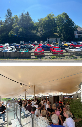 > Arrivée vers 12H30/13H00 à la magnifique Terrazza Afterworks de Ciney, lieu éphémère et exclusif pour refroidir les moteurs et profiter d'un buffet walking dinner sous forme d'un barbecue de prestige avec cuisson life OFYR.